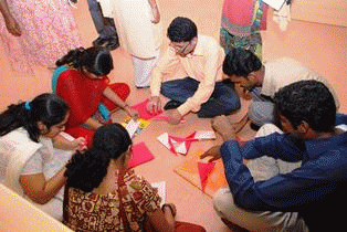 The jou ey of Pravesh 2010 started on the evening of 12th October 2010. The students were given a warm welcome which was followed with the allotment of rooms. The first event of the evening was a music meditation session, followed by a random division of students into four groups, each under a trainer.