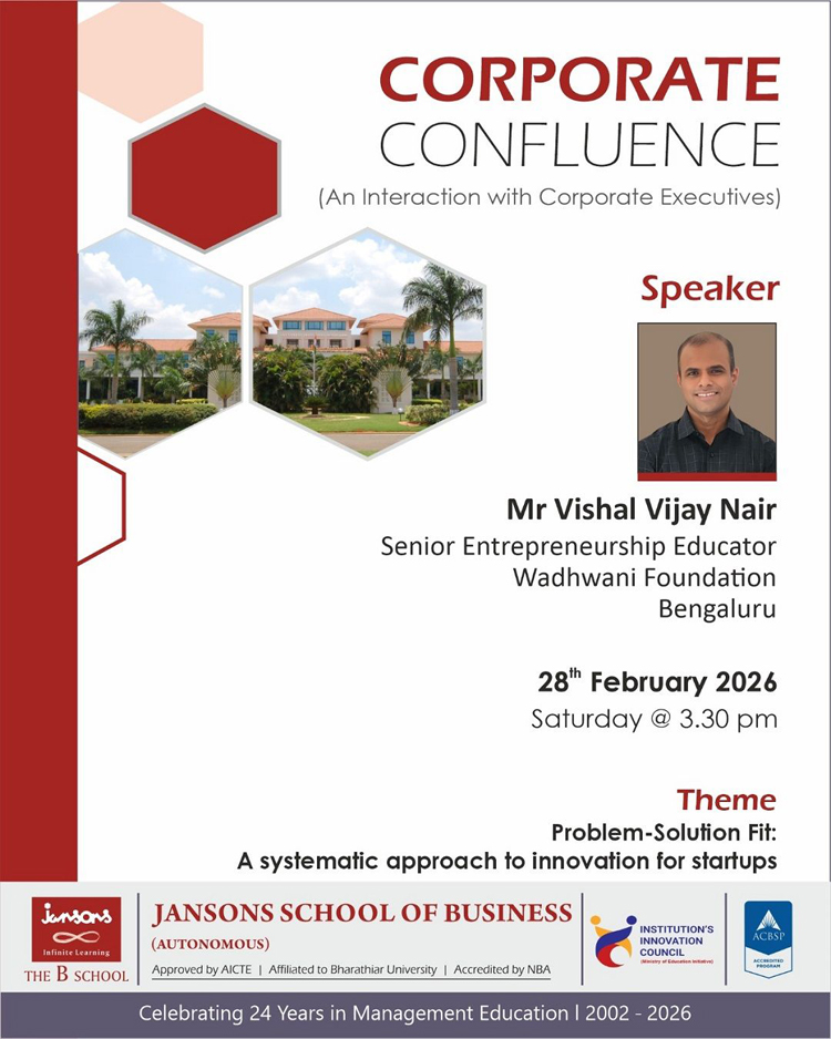 JSB is delighted to host a Corporate Confluence – An Interaction with Corporate Executives, aimed at fostering entrepreneurial thinking and industry engagement among students.