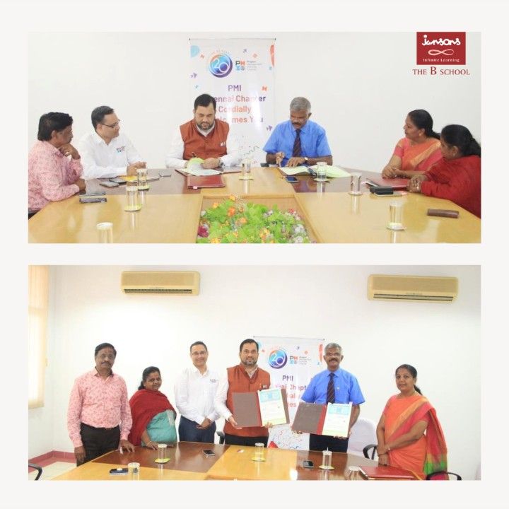 Jansons School of Business is happy to collaborate with Project Management Institute - Chennai Chapter by signing a Memorandum of Understanding on 20.10.2023. We express our gratitude to Mr. Parvez Alam M, President, Project Management Institute, Chennai Chapter. Mr.Bhuvana Sundar Soorappaiah, PMP, PMI-ACP, PMI-PBA, PMI-CAPM, Vice President (Outreach), Project Management Institute, Chennai Chapter Ms. Jeyaselvi P, AVP (Academia), PMI Chennai Chapter and Mr.Ragothaman G. - AVP (Branches), PMI Chennai Chapter, |