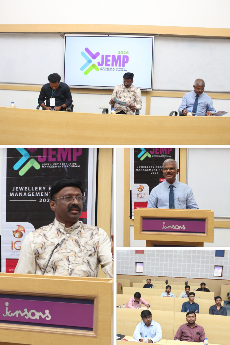 The Jewellery Executive Management Program (JEMP) was successfully conducted at Jansons School of Business in collaboration with The Institute of Gems and Jewellery, marking a meaningful step in industry-focused executive education. The session began with a warm welcome by Mr Amjad Shahir, CEO of IGJ. The program was formally inaugurated by Dr A G V Narayanan, Director, JSB, who emphasised the vital role of industry–academia collaboration in nurturing future-ready professionals for the jewellery sector. The keynote address by Mr Muthu Venkatram, President, Coimbatore Jewellery Manufacturers Association, offered rich insights into emerging trends, craftsmanship excellence, and leadership in the evolving jewellery industry. The program served as a vibrant platform for knowledge sharing, professional upskilling, and stronger engagement between academia and industry, reaffirming JSB’s commitment to specialized executive education. On 11.02.2026, Dr.Devi Premnath, Professor at JSB, led an engaging session on Digital Customer Experience, Branding, and AI integration. The session featured a hands-on workshop that shared practical strategies to strengthen brand value and elevate customer engagement in today’s evolving jewellery market. The highly interactive format fostered knowledge exchange, industry reflection, and actionable takeaways for participants. The valedictory session of the Jewellery Executive Programme was successfully held on 12.02.2026 at Jansons School of Business. On this occasion, Dr. A G V Narayanan, Director, JSB, presented mementoes to the resource persons in appreciation of their valuable insights and dedicated engagement with participants. He commended the participants for their enthusiasm and commitment, while highlighting the need for continuous learning and innovation in the fast-evolving jewellery industry. The organisers extended heartfelt thanks to the resource persons, participants, and the organising team for their collective efforts in making the programme a grand success. |